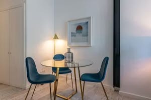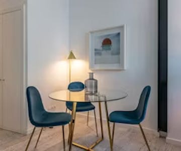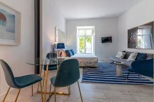 Situado en la 2ª planta, este apartamento está diseñado para que 3 adultos disfruten de una estancia tranquila en la zona de Castelo. Las obras de arte interactúan con diferentes tonos de azul en la decoración de la habitación. Hay una cama de matrimonio de 500 hilos, una mesa de comedor y un cómodo sofá que puede convertirse en sofá cama. La cocina americana está totalmente equipada para preparar comidas, incluido un lavavajillas. El cuarto de baño con bañera se encuentra en la habitación. Wi-Fi y aire acondicionado complementarán su estancia. También contamos con obras de reconocidos artistas portugueses expuestas no sólo en las habitaciones, sino también en los pasillos y espacios comunes del edificio.