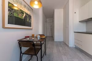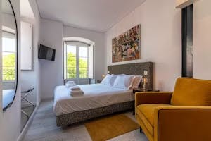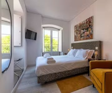 Localizado no 3º andar, este apartamento foi projetado para 2 adultos para desfrutar de uma estadia tranquila no bairro de Alfama. Este ambiente aconchegante, colorido e aconchegante é um apartamento de canto de um quarto para dois adultos que oferece diferentes vistas da cidade velha e belas obras de Carlos Correia e Brigida Mendes. O apartamento tem um quarto com cama de casal queen size onde também se encontra uma pequena varanda com vista e uma televisão. A cozinha está totalmente equipada para preparar qualquer refeição, incluindo zona de refeições. Wi-fi e ar condicionado complementarão a sua estadia.