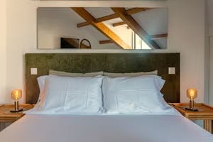 No apartamento onde você pode admirar as obras de arte de Miguel Palma e Luís Paulo Costa, você encontrará um quarto com cama de casal e uma pequena varanda com vista para a cidade e o rio.