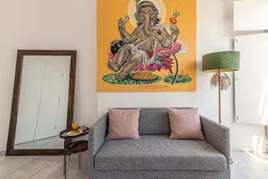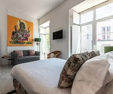 Temos também a sua disposição, espalhados não só nos quartos como também nos corredores e espaços comuns do prédio, obras de artistas portugueses reconhecidos.