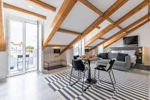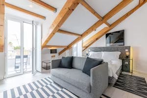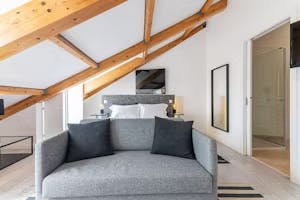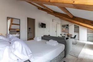 Situado no último andar, este estúdio foi pensado para 2 adultos e 1 criança desfrutarem de uma estadia tranquila no distrito de Castelo, com uma vista deslumbrante sobre o Tejo.