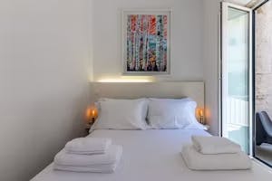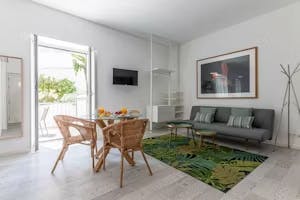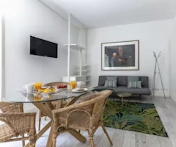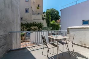Localizado no 3º andar, este estúdio luminoso para três adultos com uma kitchenette totalmente equipada e um terraço com vista para o jardim combinam na perfeição com as obras de Paiva e Gusmão e Luís Alegre. O apartamento tem uma cama de casal, a sala tem uma mesa de jantar e um confortável sofá que pode ser transformado em sofá-cama. O terraço está equipado com vista para o pátio para que possa desfrutar das suas refeições ao ar livre. A cozinha compacta está totalmente equipada, incluindo lava-louças. Wi-fi e ar condicionado complementarão a sua estadia.