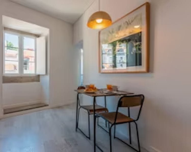 Situated on the 2nd floor, this apartment is designed for 2 adults to enjoy a calm stay in the Alfama neighborhood. The apartment has a bedroom with a queen-size double bed where you'll also find a small balcony with a view and a TV. The kitchen is fully equipped for meal preparation, including a dining area. In the private bathroom, we offer towels with a weight of 550 grams. Wi-Fi and air conditioning will complement your stay. We also have works by recognized Portuguese artists displayed not only in the rooms but also in the hallways and common spaces of the building.